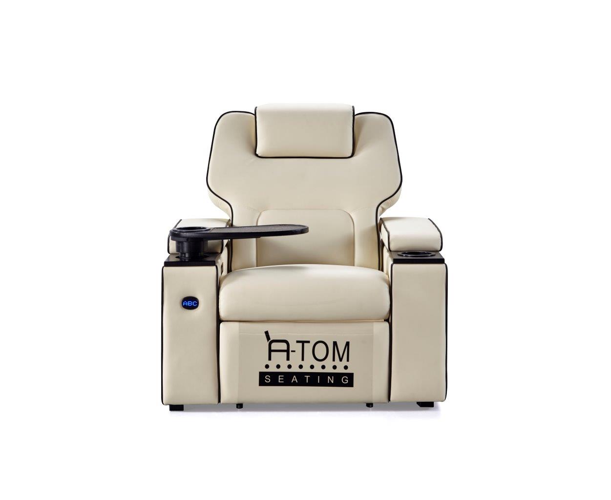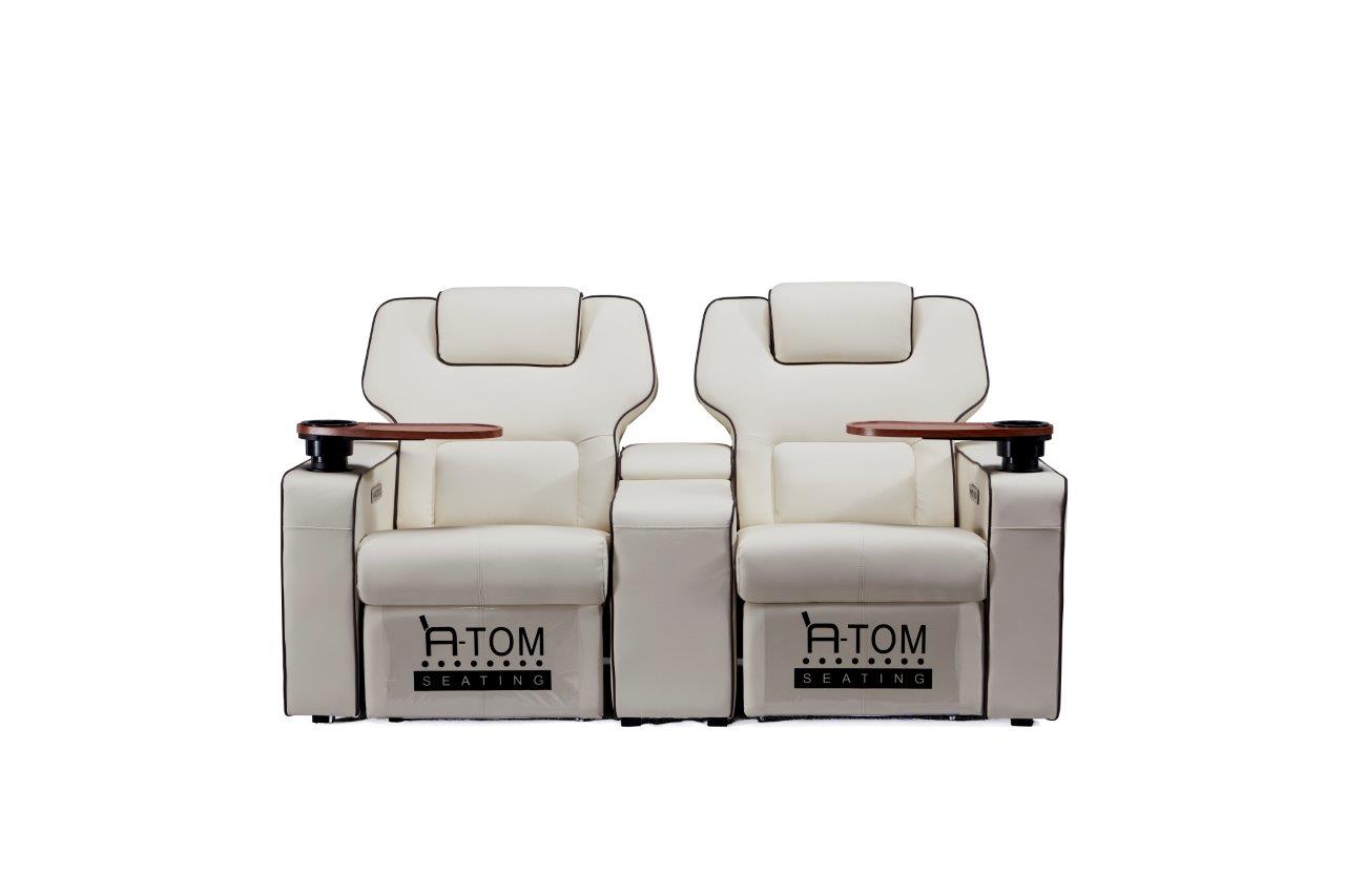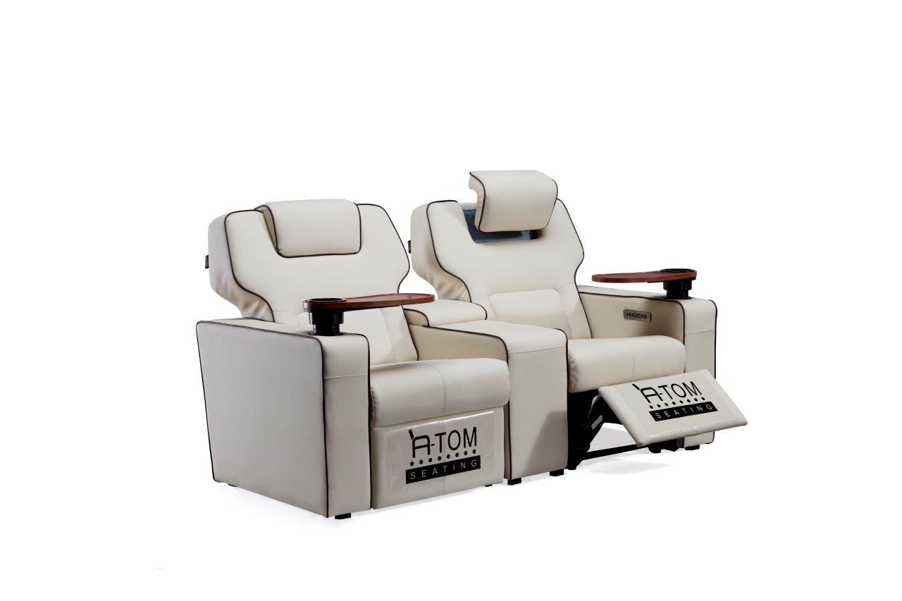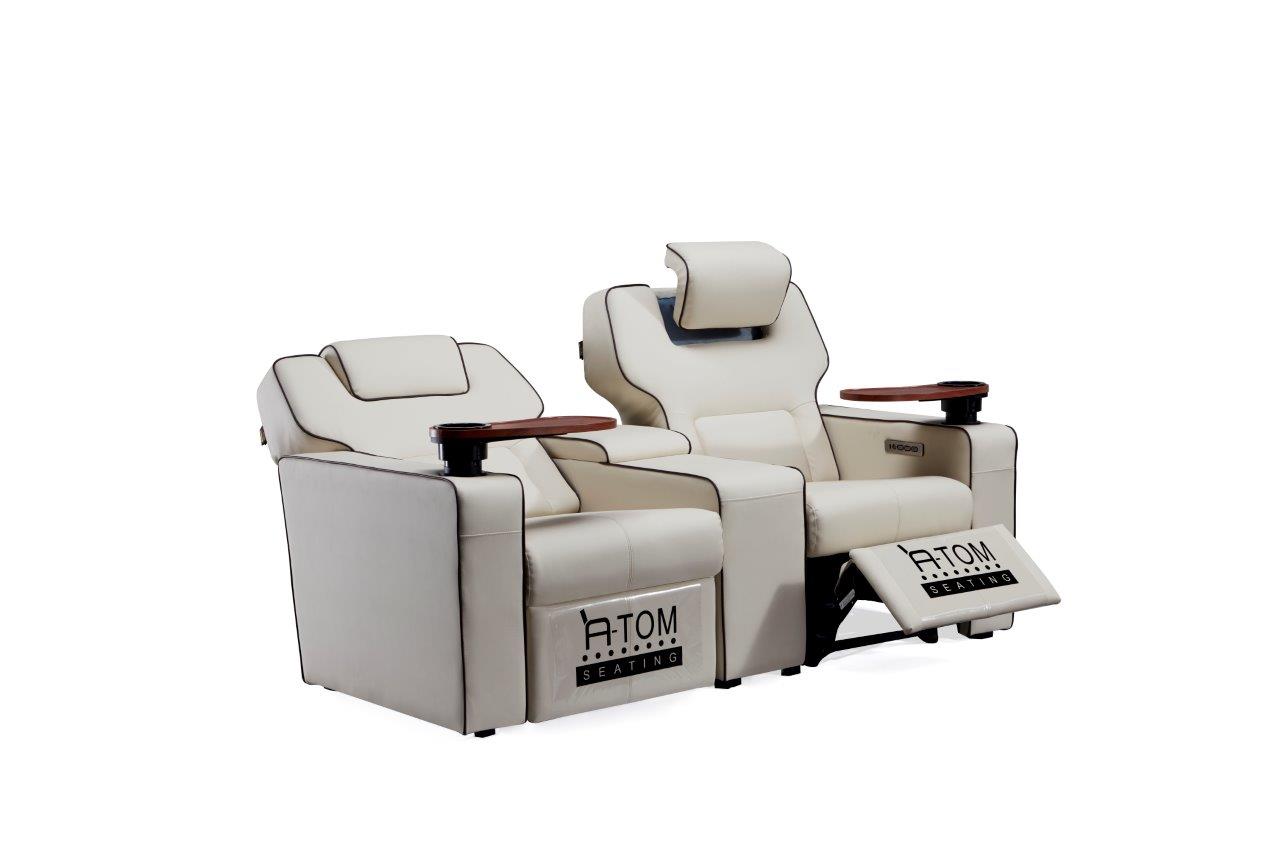 Platinum recliner av Atom Seating er fullspekket med en rekke funksjoner med tanke på dagens krav fra kinoer og publikum. VIP-reclineren er like komfortabel som den er luksuriøs. Det romslige designet, en glatt luksuriøs skinnfinish og utført i formstøpt skum for den perfekte sittekomfort og filmopplevelsen, er bare toppen av isfjellet når det gjelder funksjoner og fordeler med denne reclineren.