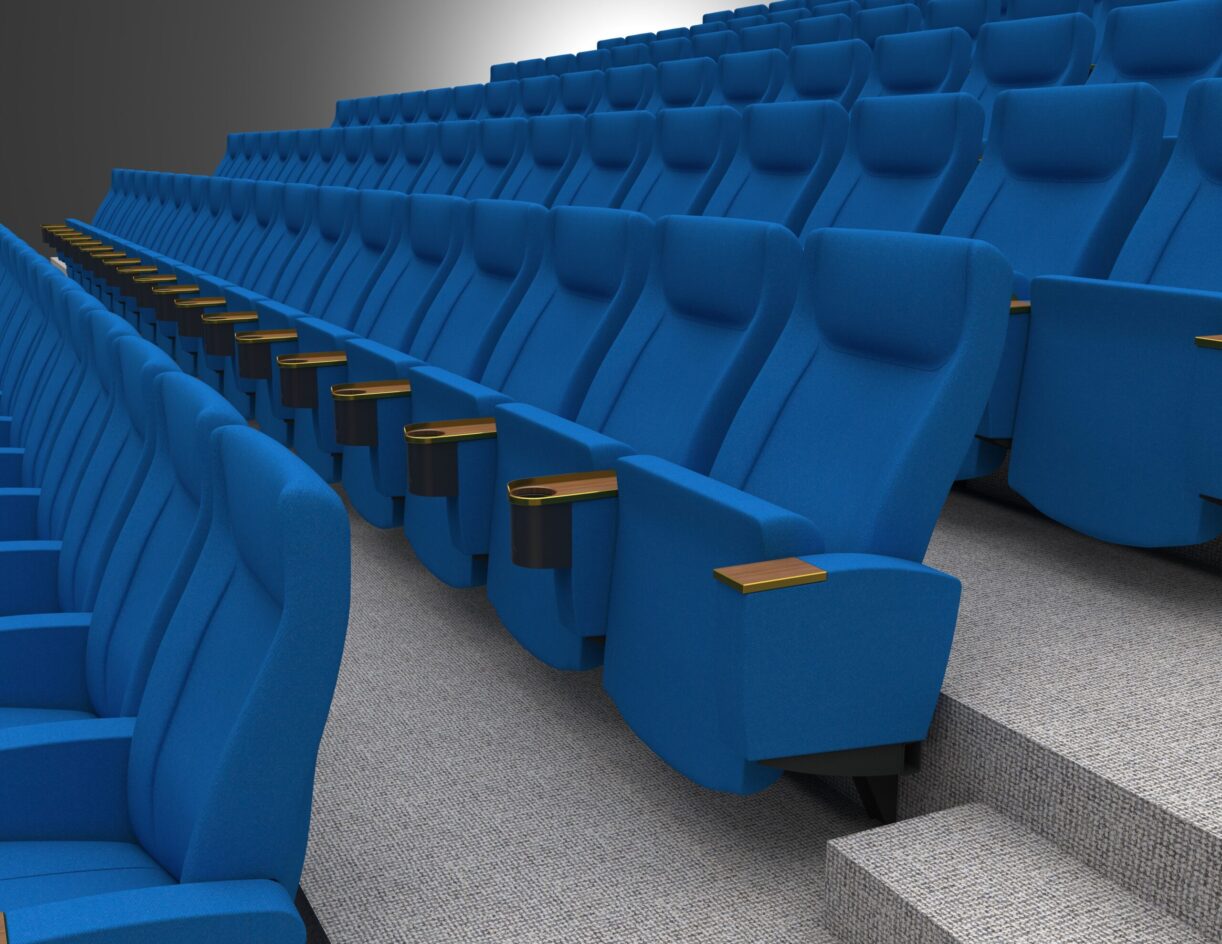 Skeie | Epic Tip-Up tilbyr maksimal komfort på et minimum av plass. Den har vedlikeholdsfrie svinghengsler som gjør at setet beveger seg lydløst i posisjon. Denne modellen gir maksimal komfort og støtte takket være forbedret side- og korsryggstøtte og en dypere sittepute. Den brede nakkestøtten gir mer privatliv. Skeie Epic Tip Up passer svært godt i amfiteatre med smale landganger.
