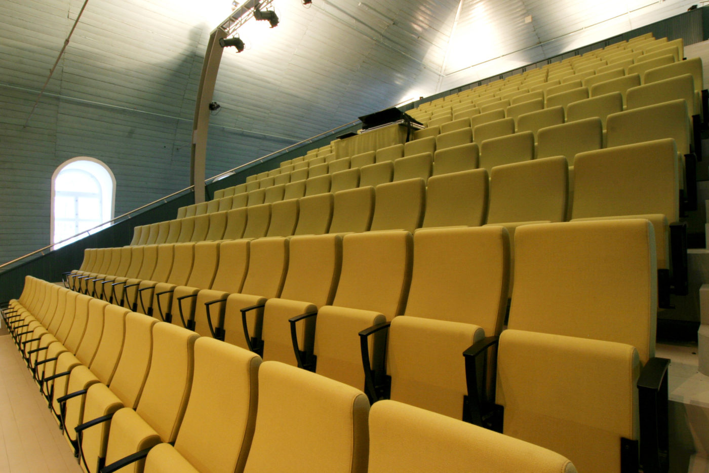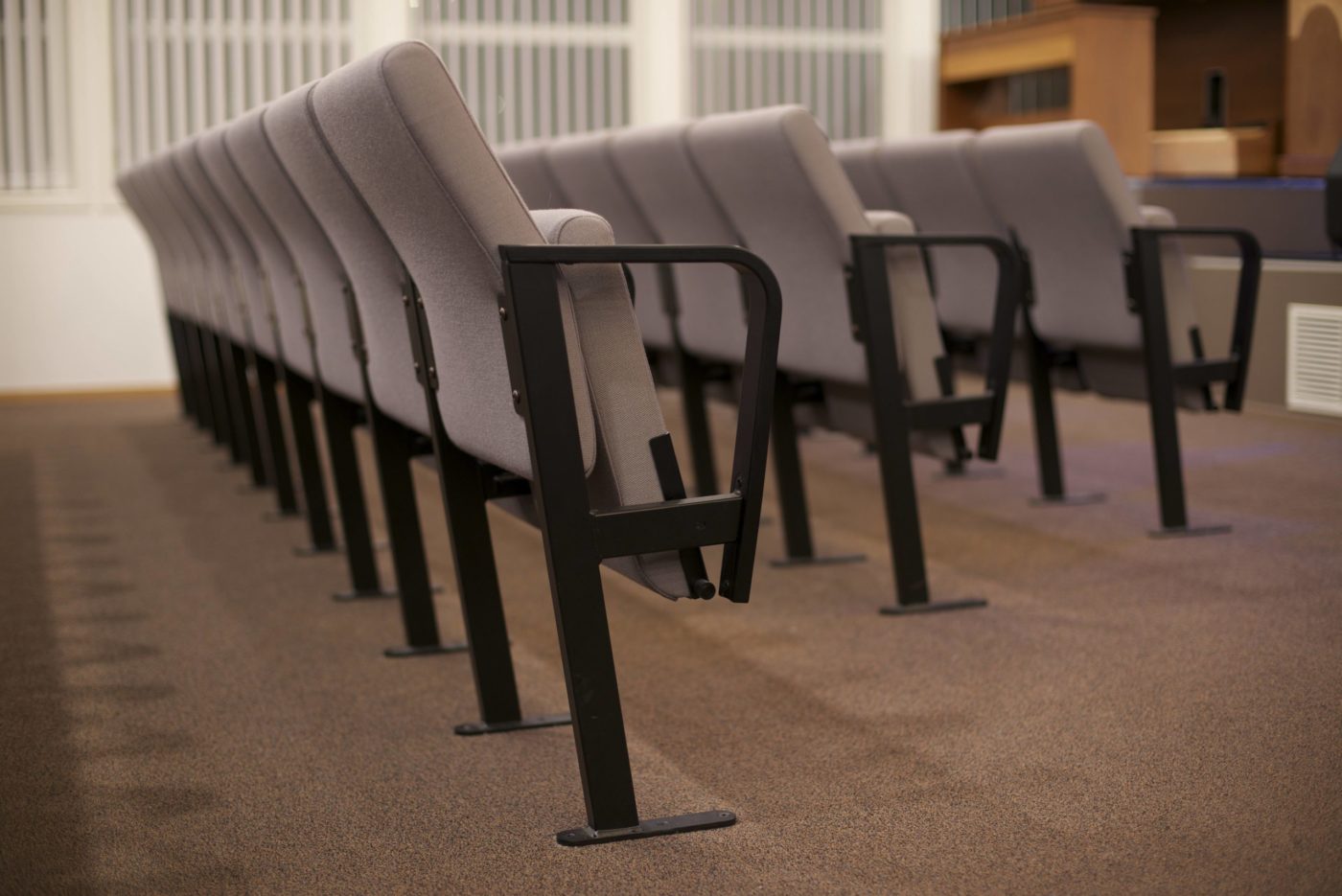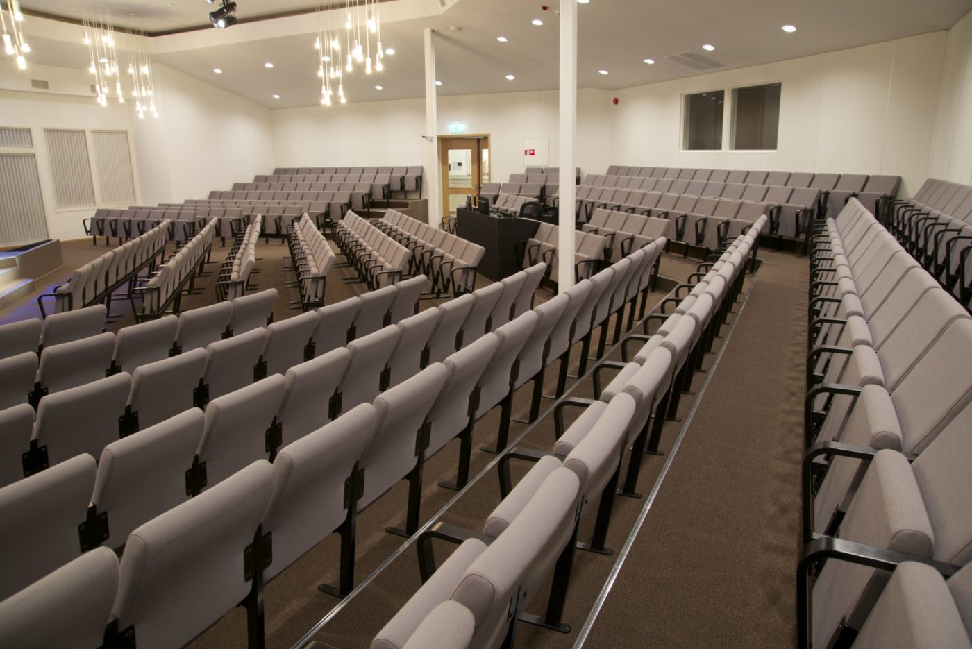 - Monteres med gulvfeste mellom hver andre stol, eventuelt i opptrinnsfeste.