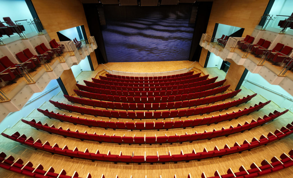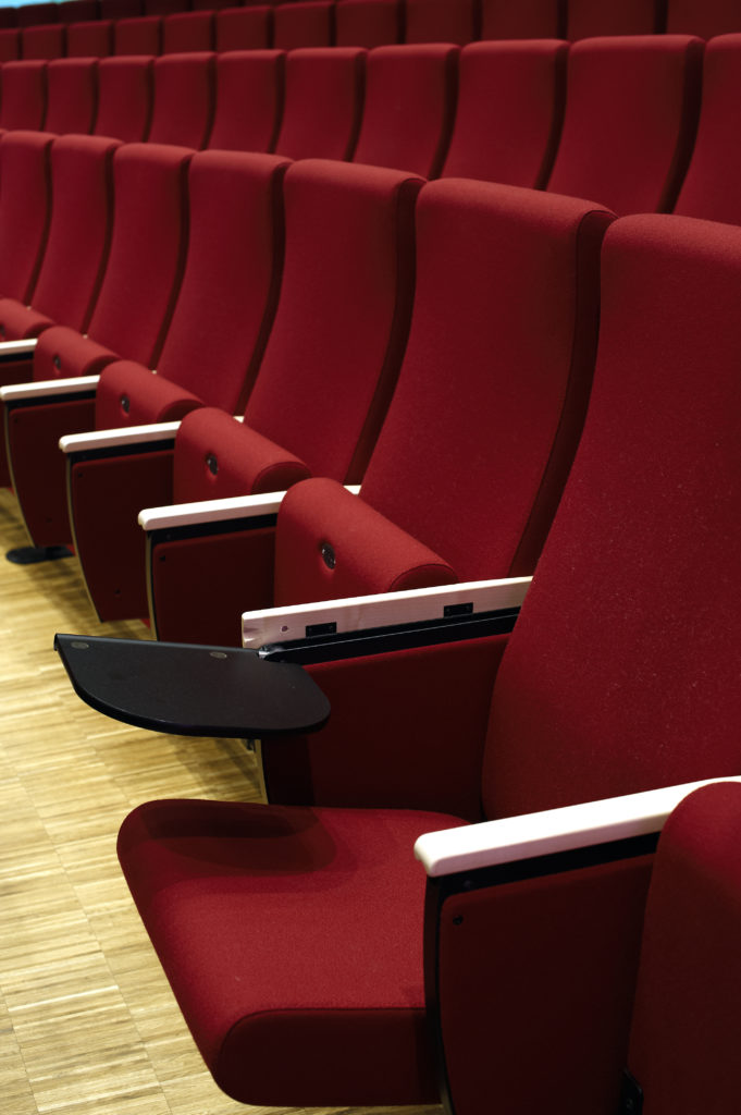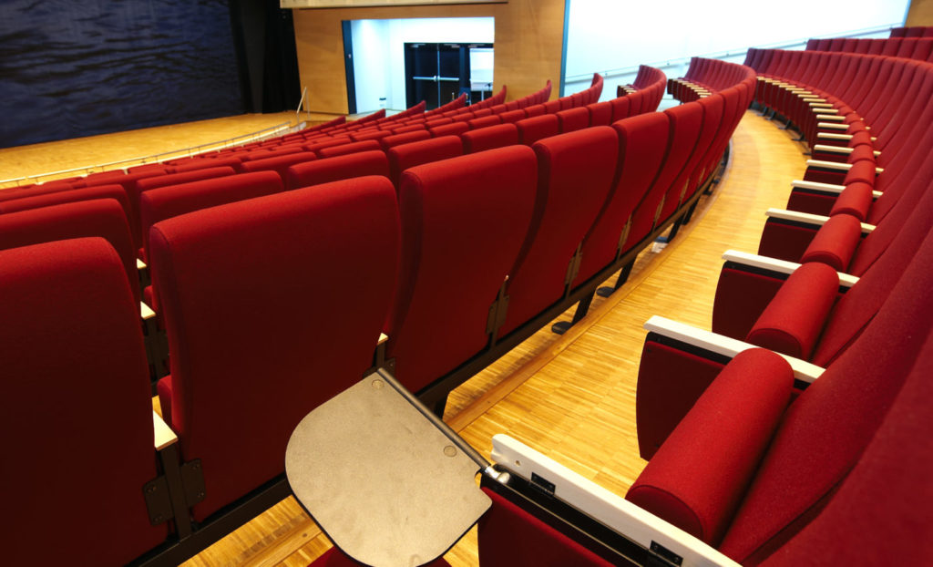 Til dette huset leverte vi Skeie | Artist montert i buede rader og med Notis A bord integrert i armlener.